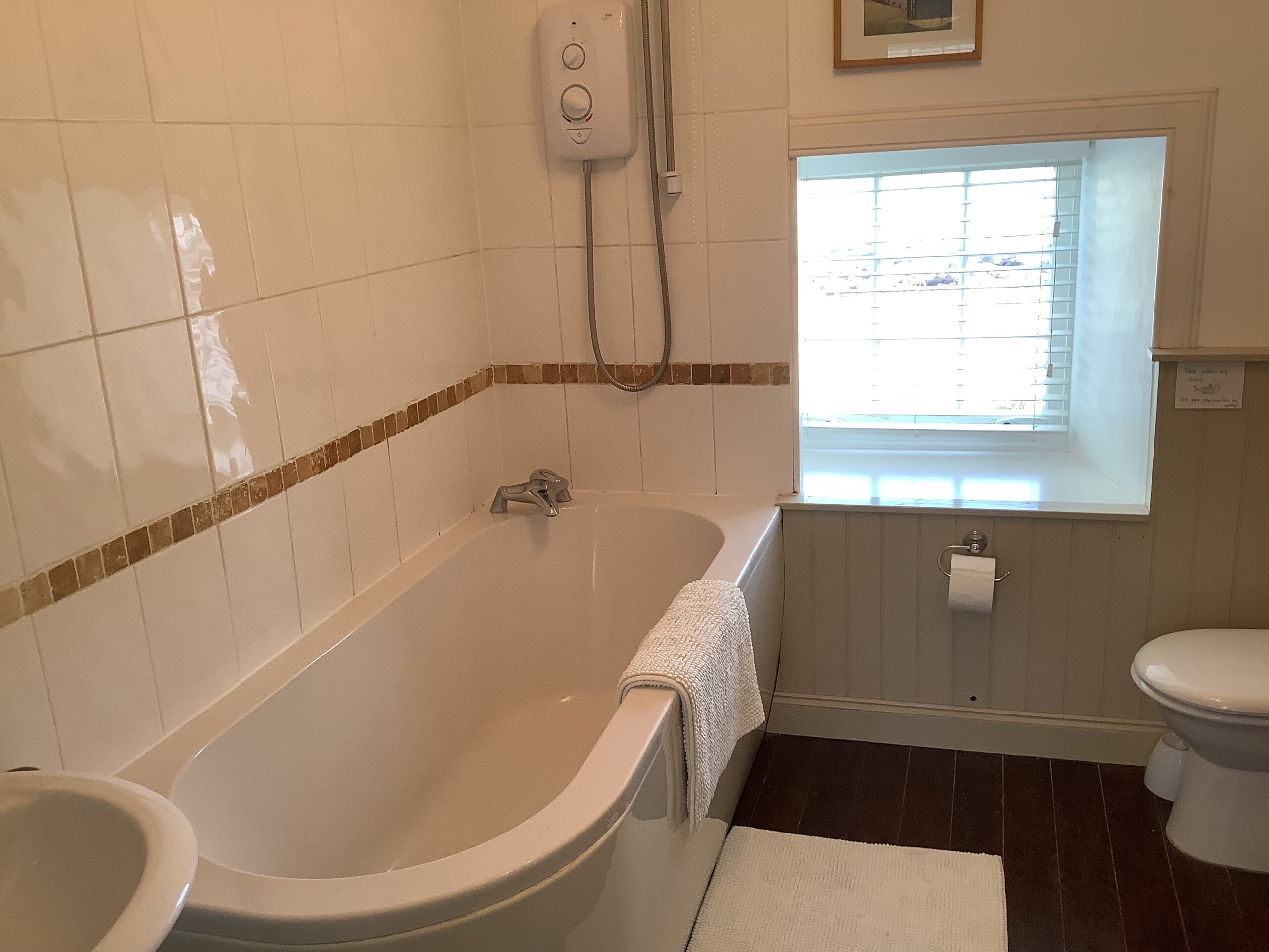 The Kipper House has just one spacious bathroom/WC which has a really deep, double ended tub with an electric shower over. Towels and bathmat are provided.