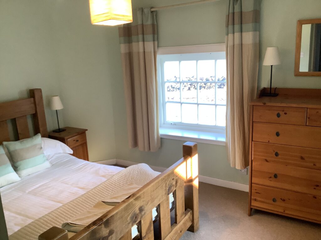 There are two comfortable double bedrooms with fantastic views of the sea. A third, cheerful twin bedroom has space for a travel cot if you bring one.
